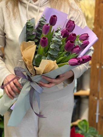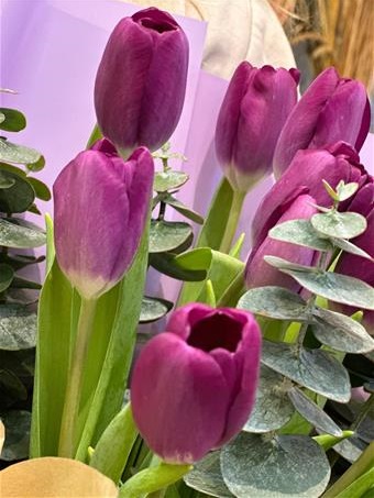 15 Adet İthal Mor Laleler Tanzim Edilmiştir.