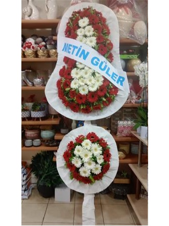 Çiftli Gelin Duvağı Modeli Kırmızı Beyaz Gerberalar İle Hazırlanmış Düğün, Açılış, fuar, Nikah Organizasyonlarına Gönderim amaçlı Çelenk. 220-230 Cm Boyunda, Takribi 80-90 Adet Gerbera İle Hazırlanmaktadır.