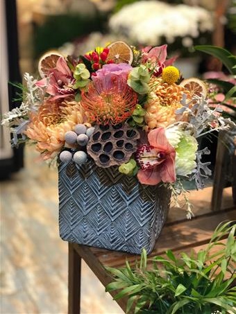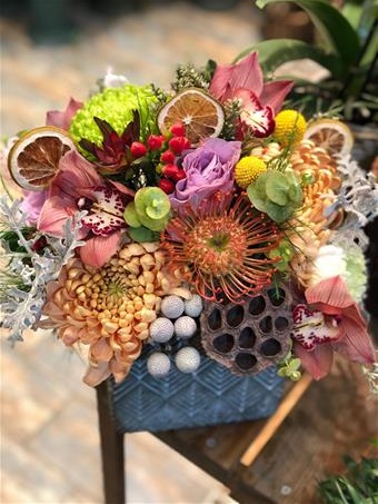 İçerinde; beargrass, Hypericum, Mor Gül, Brunio, Leucasperum ve Renkli Anastasialer
